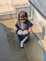 バケツをプールにしとるがな ( ̄д ̄)ノ