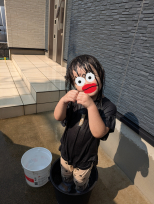 メダカ エビなどの水槽を玄関で一人で洗っておりました。